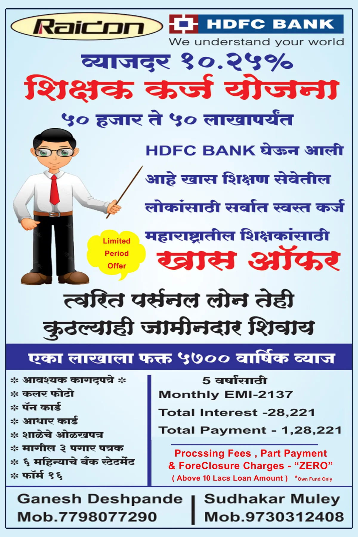 गव्हर्नमेंट एम्प्लॉयी आणि शिक्षक यांच्या साठी खास ऑफर १०.3५ % वार्षिक